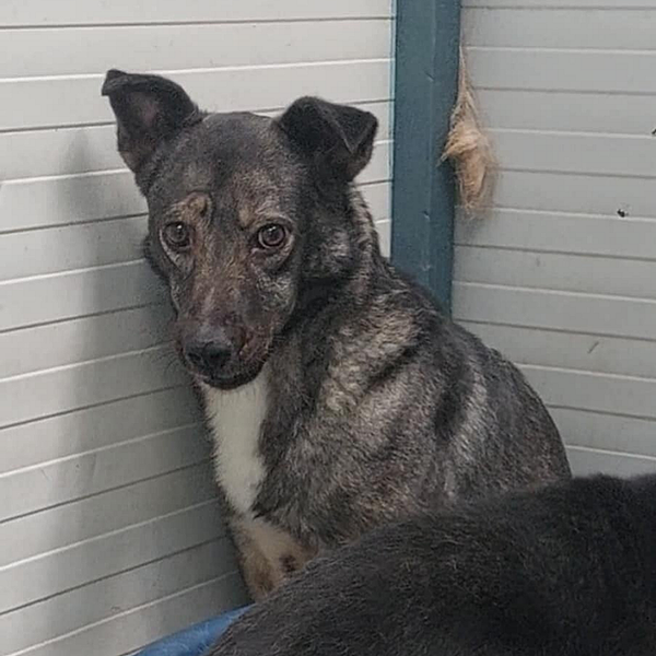 🐶 Lui, elle lui fait confiance. Lui, il est sa lumière. 👀 Son regard est inquiet, toujours aux aguets. Pas d’agressivité, jamais. Juste de la peur. Grisette n’a pas eu le temps d’apprendre que l’humain pouvait être bon.