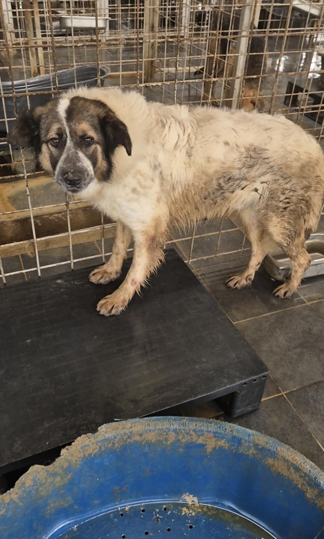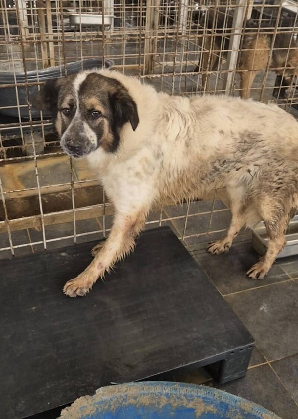 Tango a été placé dans le pire endroit de la fourrière. Une cage individuelle, à peine 2 m². Pas de couverture, pas de chaleur. Juste une palette en bois humide, posée sur un sol tout aussi froid. La seule compagnie qu’il a, ce sont les pleurs, les hurlements déchirants des autres chiens autour de lui. Jour et nuit. La solitude, le désespoir, le froid et l’humidité ont remplacé l’amour.