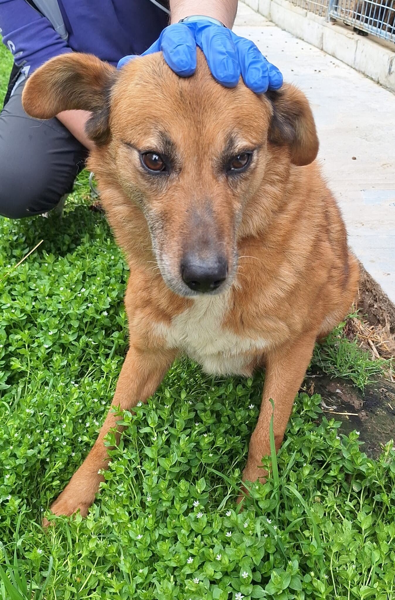 Joy, 7 ans de cage, entrée chiot, tu as vieilli derrière ces barreaux. Il suffit de plonger dans ton regard pour comprendre le malheur que tu subis chaque jour, cette souffrance silencieuse qui te ronge. Mais malgré tout, tu gardes l’espoir. Tu n’as pas perdu cette petite flamme. Lorsque l’on s’approche de toi, tu acceptes les caresses, et ton regard, d’une douceur infinie, témoigne d’un amour inaltéré, prêt à être offert à celui qui saura t’offrir la liberté et la tendresse que tu n’as jamais eues.