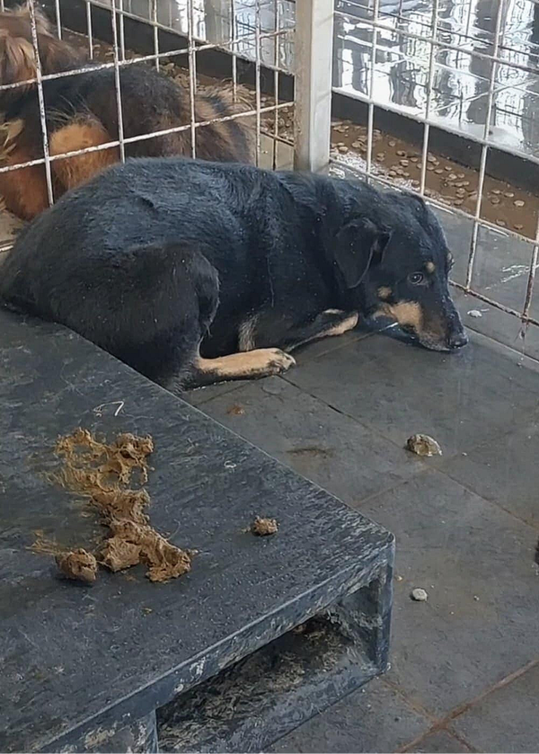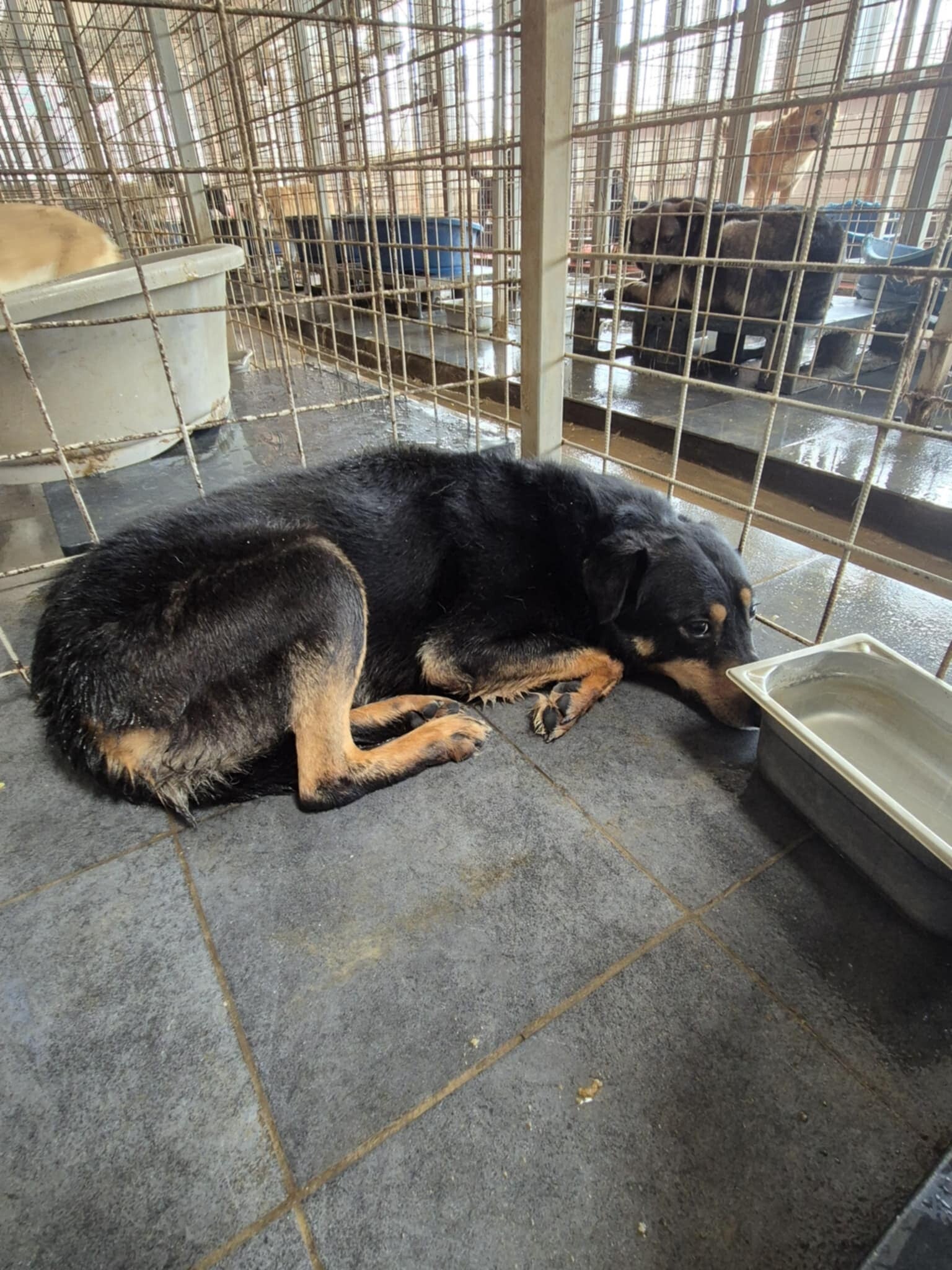 Simba est là, dans sa cage étroite, depuis deux longues années. Ses yeux, autrefois pleins de vie, sont devenus vides, figés. Il ne cherche plus à attirer l'attention, ne lève plus la tête pour espérer un geste, une caresse, un regard. Les murs sont devenus son monde, et l'ombre de l’indifférence pèse sur lui chaque jour un peu plus. Il n'a plus la force de rêver, ni même celle de lutter. Son cœur, marqué par l'absence de tout amour, se meurt en silence. Il attend, sans espoir, que le temps l'oublie.