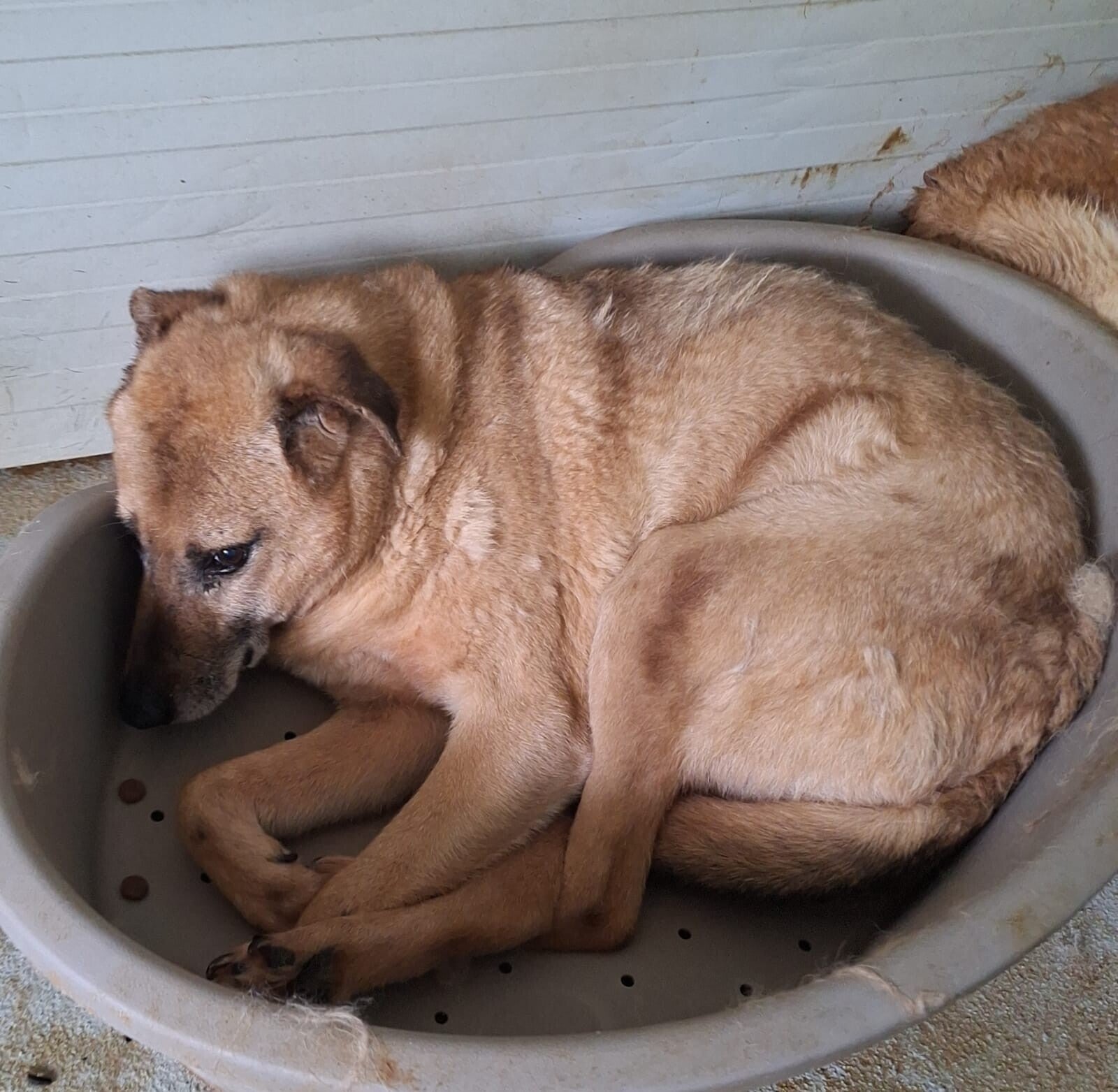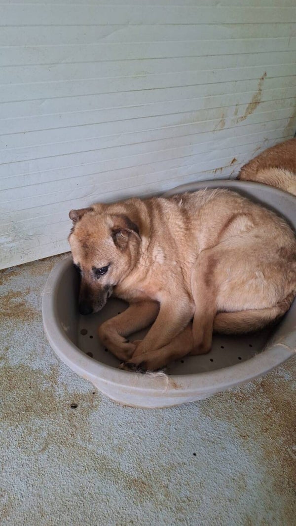 Ce chien beige, discret, est devenu l’ombre de lui-même. Totalement résigné, il n’attend ni caresse, ni regard, ni miracle. Il attend… la mort.