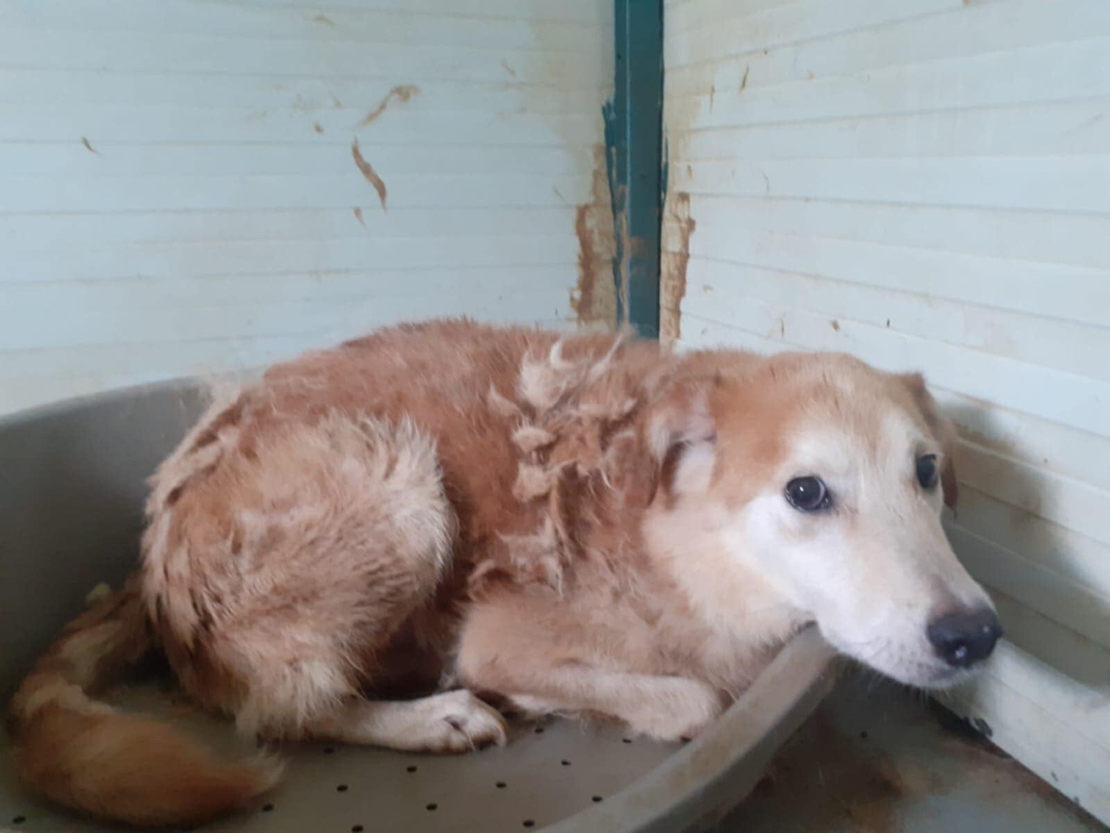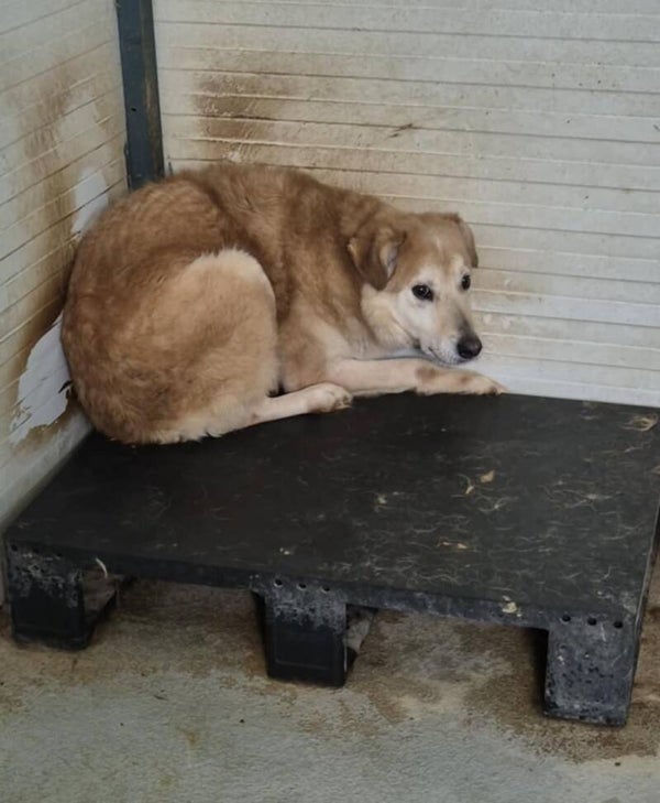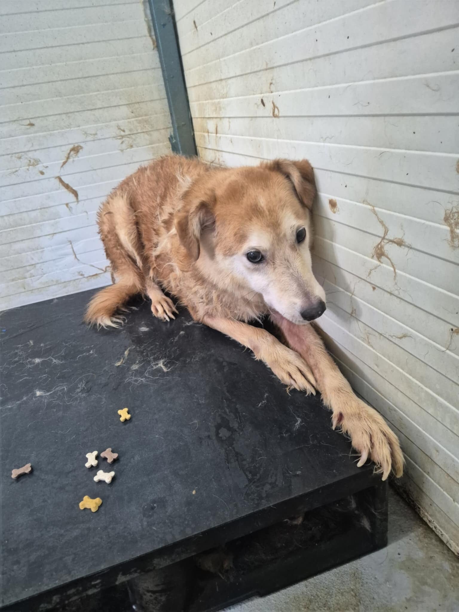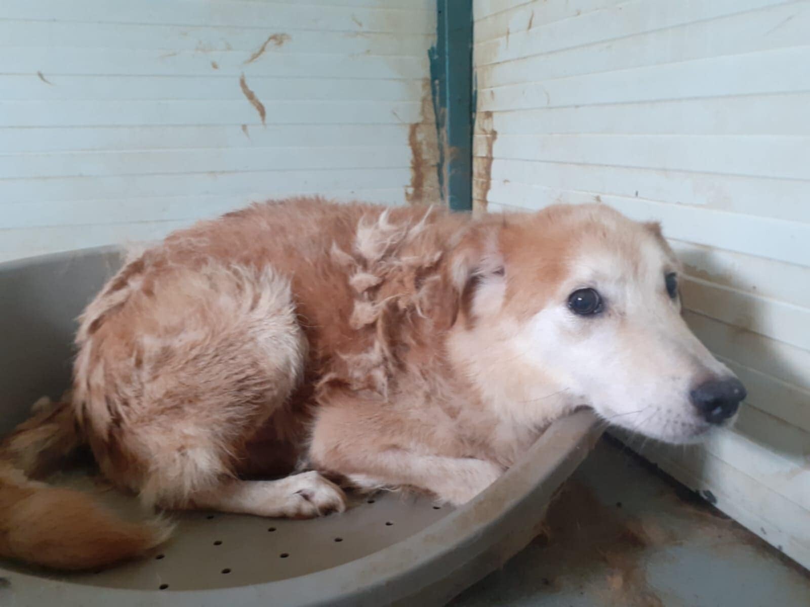 Ce chien beige, discret, est devenu l’ombre de lui-même. Totalement résigné, il n’attend ni caresse, ni regard, ni miracle. Il attend… la mort.
