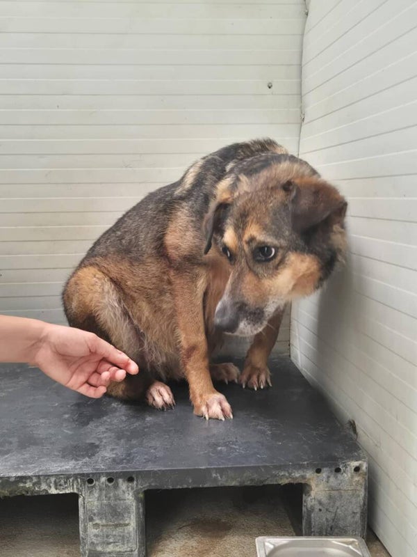 - 💖 Caractère : Peureux, calme, accepte d'être touché, résigné, terrifié, a fait une crise d'épilepsie en fourrière à notre passage et restait allongé dans ses excréments sans bouger