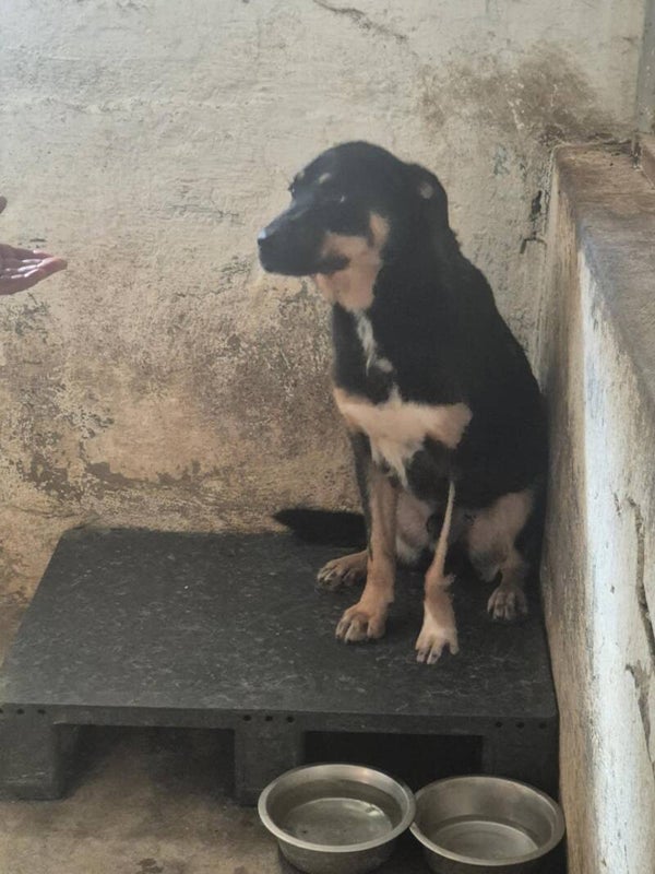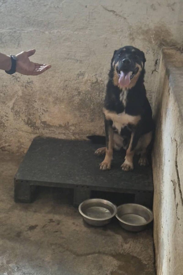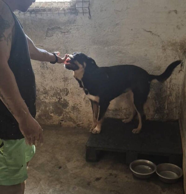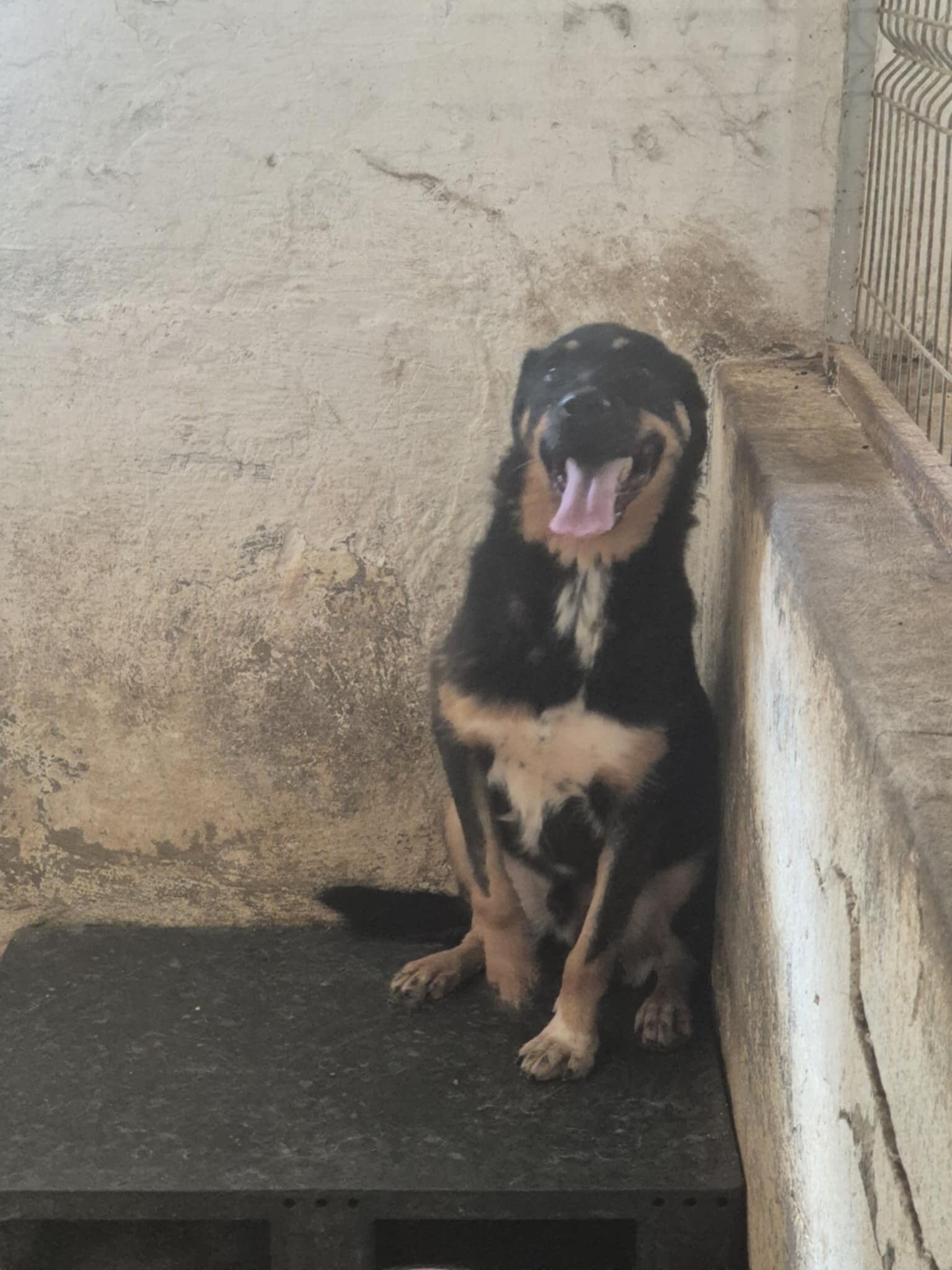 Aujourd’hui, Riley vit enfermé dans un box insalubre intérieur de 4 m² duquel il ne sort jamais, dans une fourrière mouroir, lui qui ne rêve que de liberté, de balades, de câlins… Qu’a-t-il fait pour mériter ça ? Rien. Rien, sauf aimer un peu trop des humains qui l’ont trahi. Nous l'avons donc sorti 30 minutes afin qu'il puisse se dégourdir les pattes et revoir des copains chiens en extérieur.