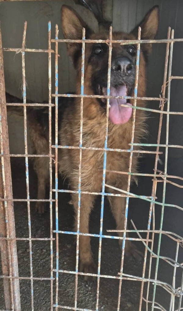 Gospel est une magnifique chienne berger, aussi belle qu’attachante. Enfermée dans une cage de 1m², sans voir le monde, sans courir, sans respirer l’air libre, elle supplie pour qu'on la sorte. Nous l'avons donc fait à notre visite en fourrière et elle a même eu droit à un os.