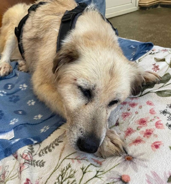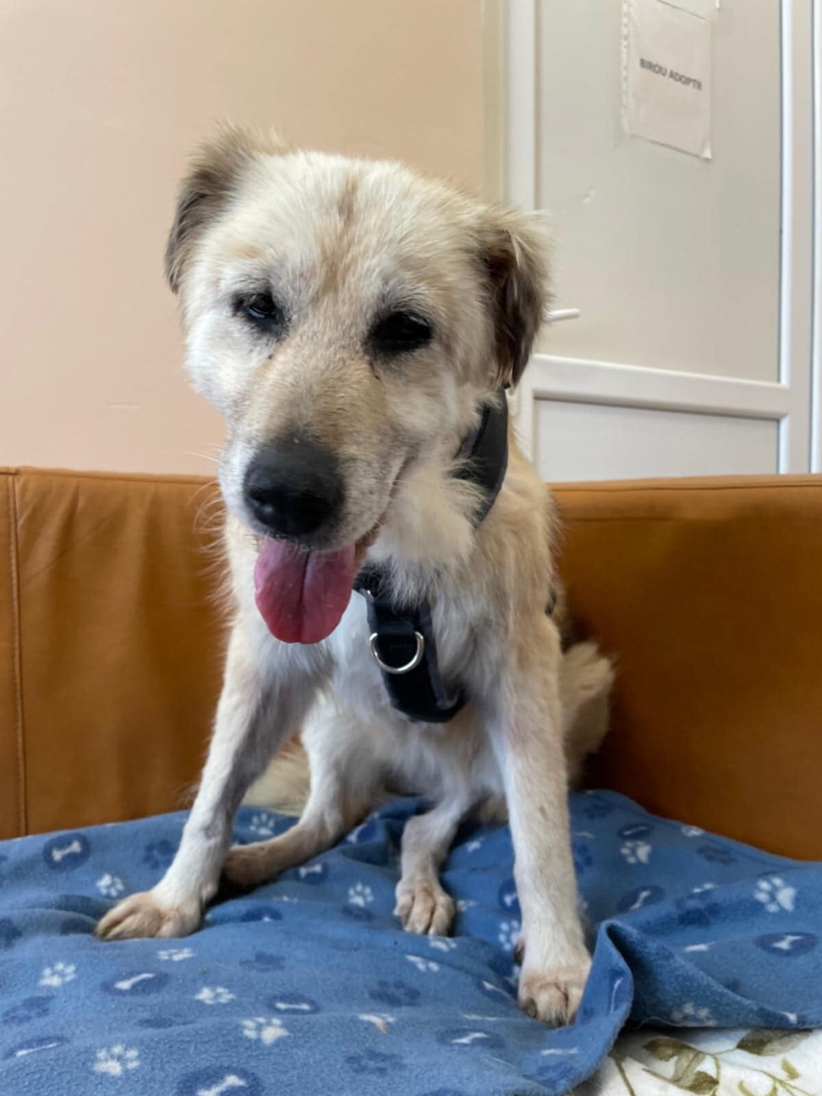 Une femme au grand cœur l’a recueillie, l’a emmenée chez le vétérinaire, l’a soignée, déparasitée, câlinée… Mais elle ne peut pas la garder : elle est âgée elle aussi, malade, et n’a plus la force de s’en occuper. Et un fourrière, ce n’est pas une option : cette chienne fragile a besoin de calme, de chaleur, de présence. Pas d’un box froid et bruyant.