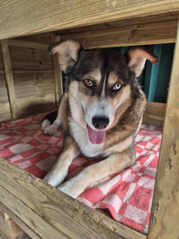 Croisée husky, avec un œil bleu glacier et un autre brun doré comme le miel, Patty est une chienne que la vie n’a pas épargnée… et pourtant, elle garde cette lueur, ce petit éclat d’espoir quand elle croise le regard d’un humain.