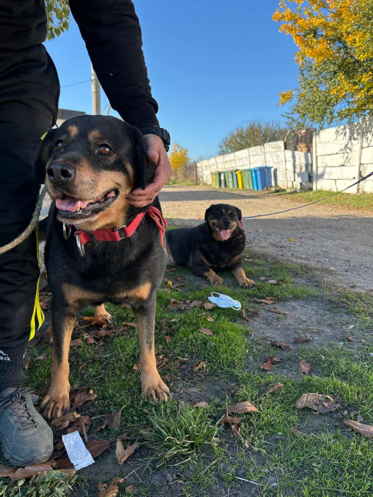 Ce joli duo de croisés Rottweiler est d’une douceur infinie. Elles sont inséparables, calmes, gentilles et marchent parfaitement en laisse. Toujours l’une près de l’autre, comme si chacune puisait sa force dans le regard de l’autre.