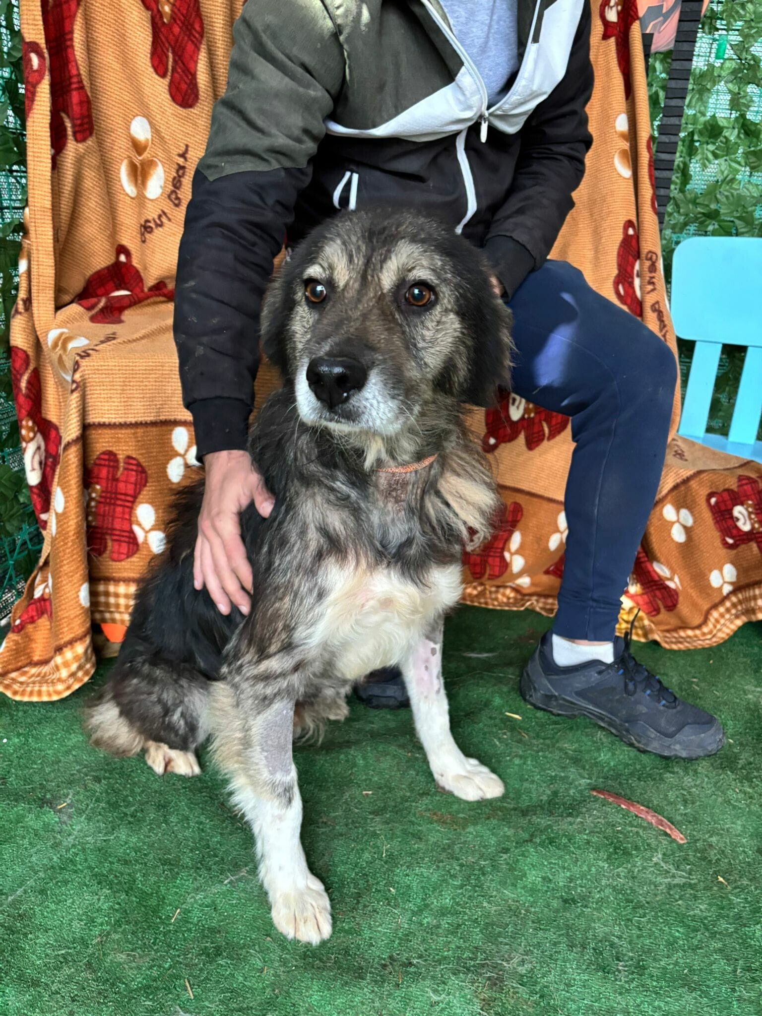 Popi a 12 ans. 12 années de loyauté, de douceur, de vie partagée… pour finir jeté dehors comme un vulgaire déchet. Lui qui avait une “famille”, lui qui croyait avoir un foyer… s’est retrouvé abandonné dans la rue, comme c’est malheureusement si fréquent en Roumanie.