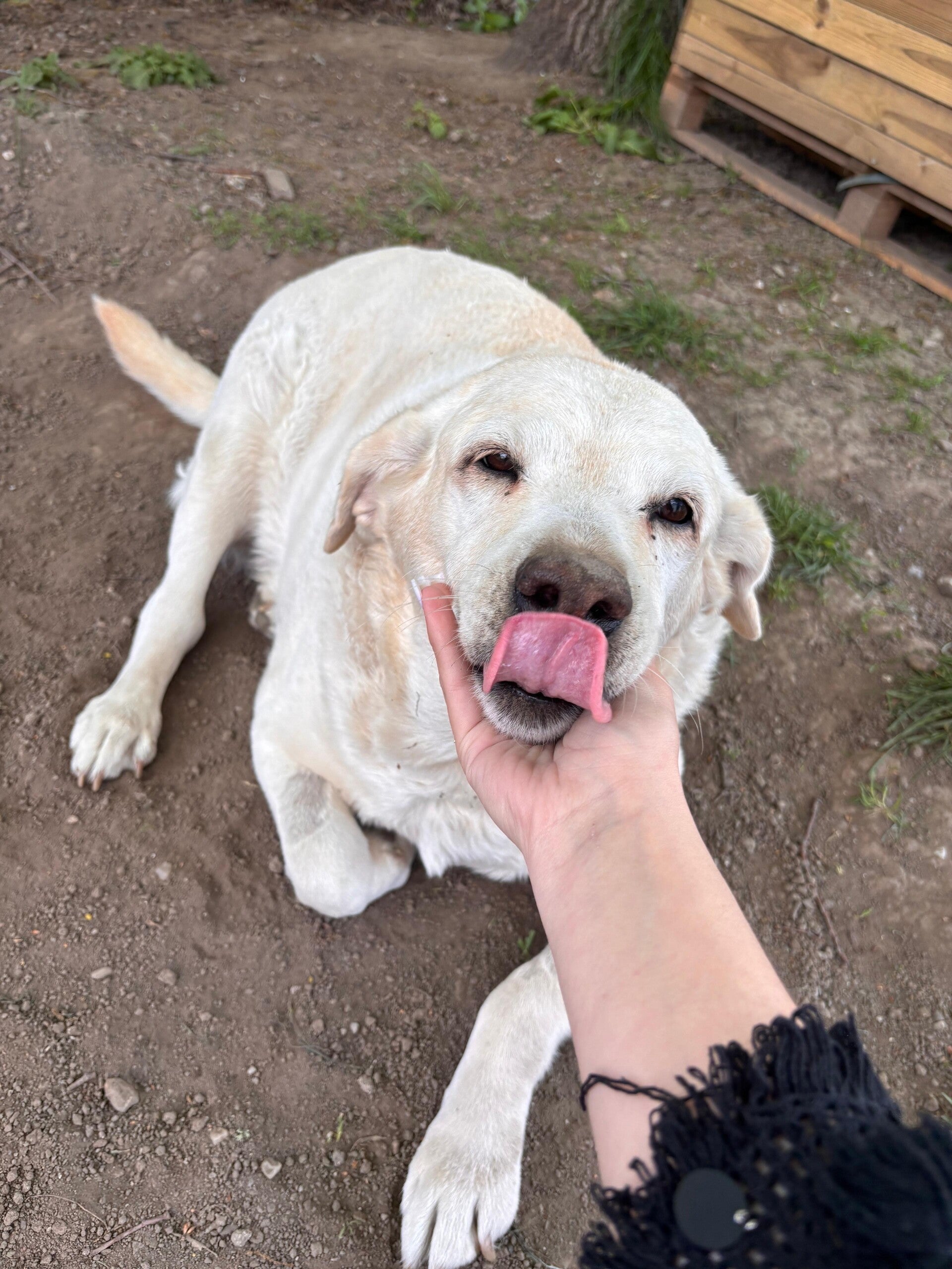 - 📏 Taille/poids: Moyenne, +/- 25 kilos, obèse, petits soucis de mobilité mais marche en laisse, croisée labrador